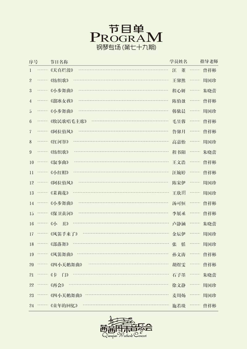 七十九周末音樂(lè )會(huì )—鋼琴專(zhuān)場(chǎng)于2018年3月30日晚在茜茜藝術(shù)體育中心校區舉行!